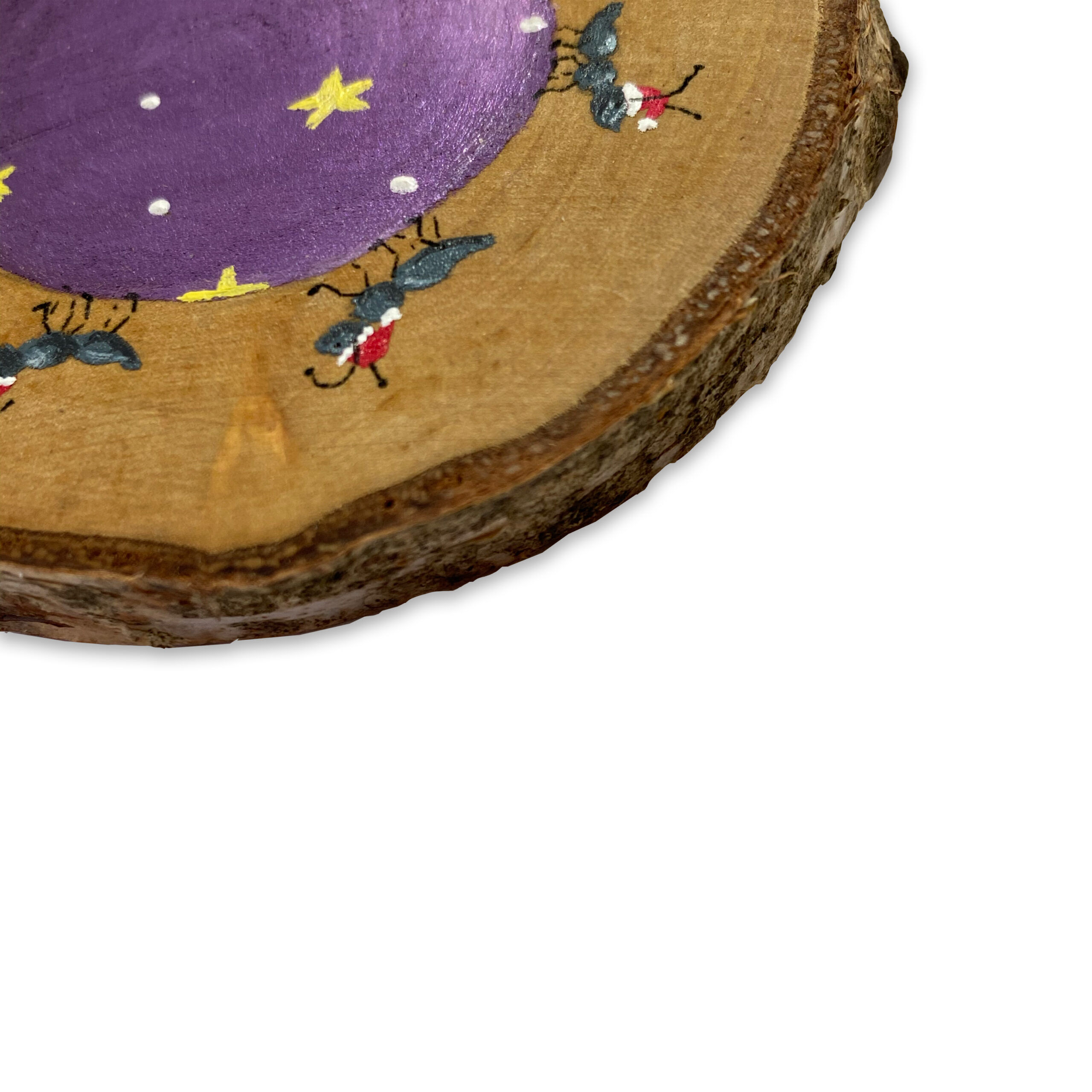 De hanger is aan 1 zijde beschilderd en heeft een diameter van zo’n 8cm.