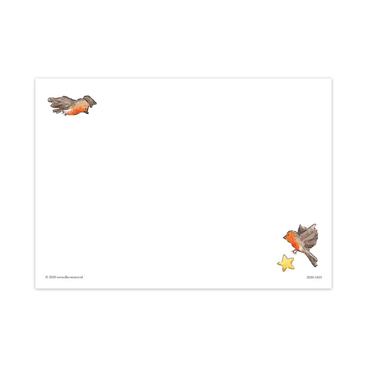 De kaarten zijn gedrukt op 300 gr. “vibers” dit is een bijzonder papier, gemaakt van olifantsgras. Dit papier wordt in Nederland gemaakt en het gras wordt gekweekt op braakliggende terreinen. Het heeft een mooi subtiel vezeltje, daardoor krijgt het ook een mooie milieuvriendelijke uitstraling wat goed past bij dit ‘groene’ papiertje. Op de detail foto kun je dit papier goed zien.