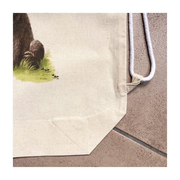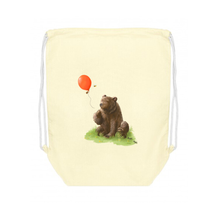 Mooie katoenen rugtas met trekkoord. Deze rugtas is eenzijdig bedrukt met een full colour illustratie van een lieve beer met een ballon.
