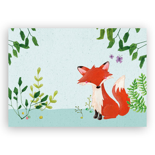 Dit lieve vosje is ook te verkrijgen als wenskaart en zelfs als een houten stempel!